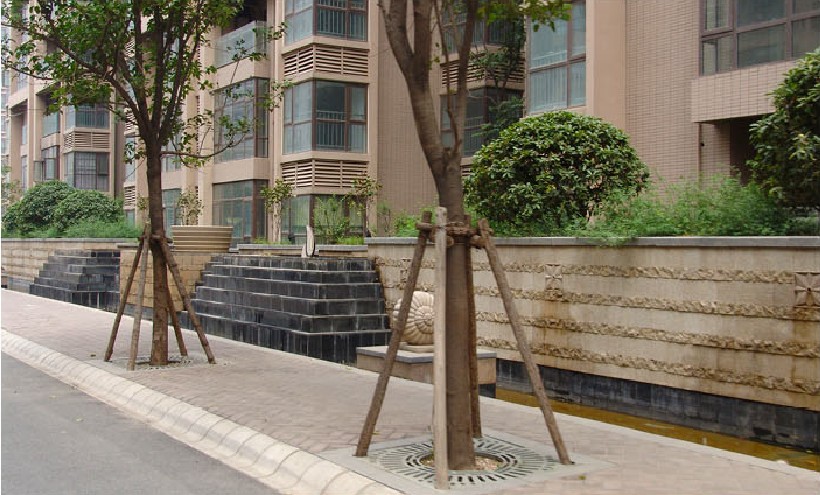 該小區(qū)結(jié)合現(xiàn)代國際先進(jìn)的設(shè)計(jì)理念,是景觀風(fēng)格與建筑的和諧統(tǒng)一,各種形式的水景,增加小區(qū)活力;植物景觀以當(dāng)?shù)刂参餅橹鳎嵘参锍苫盥剩訌?qiáng)人們的歸屬感。