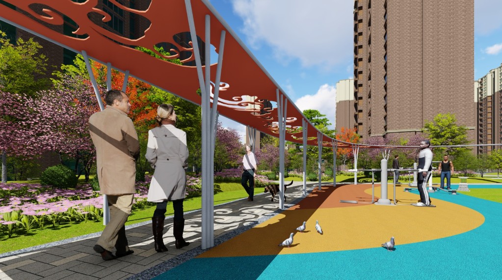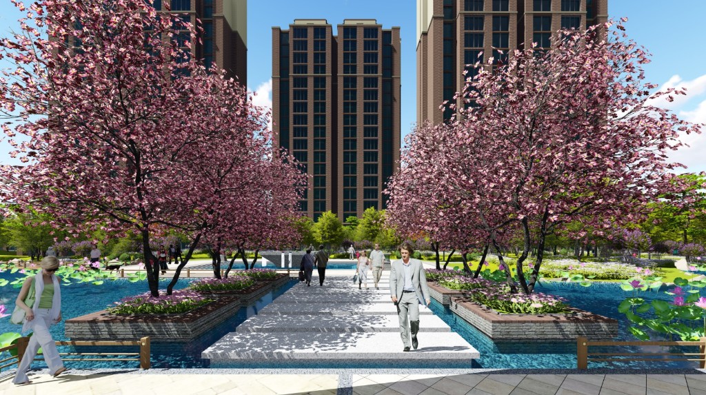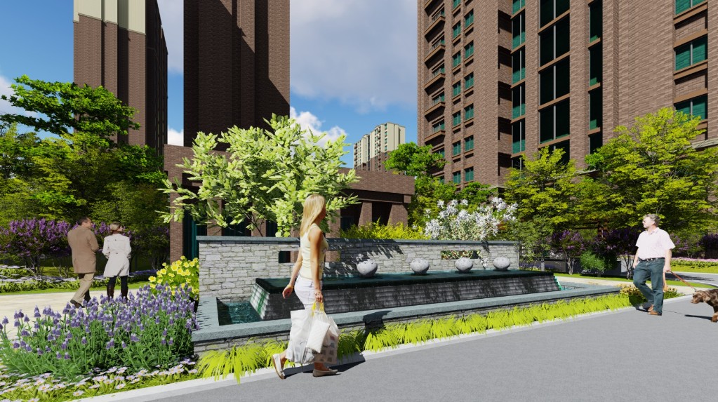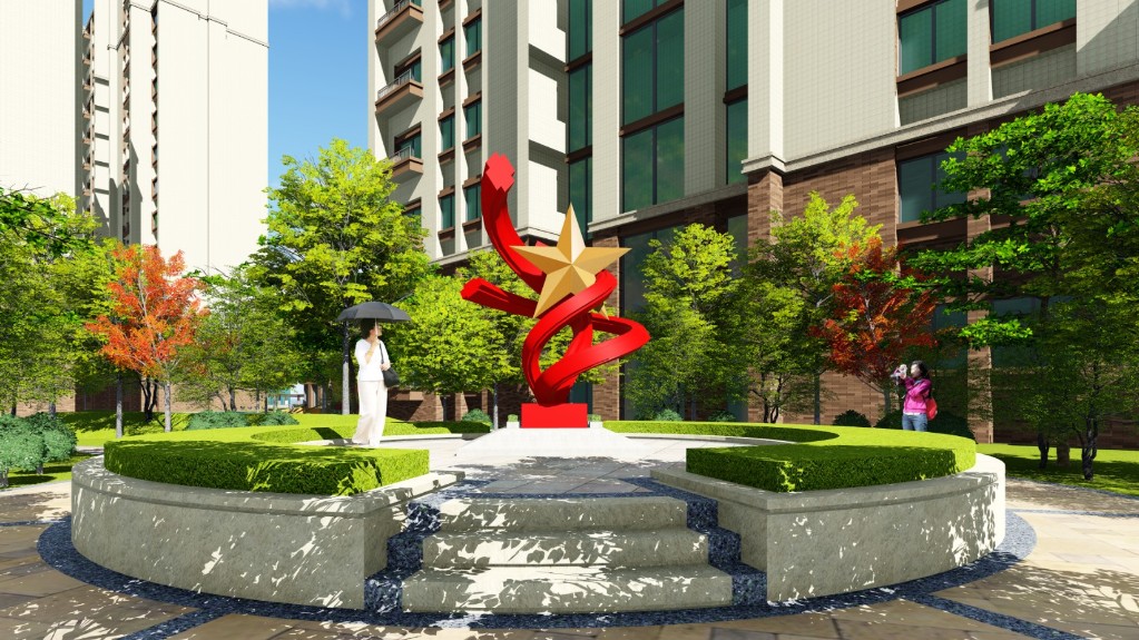 與此同時小區景觀中景觀風格整體以簡潔明快為主,注重鄉土植物的應用;"軍功章"、"五星"采用軍隊元素進行提煉作為案名;小品與偉人詩詞,歷史名人結合進行演繹;景觀采用高大的樹木做主景樹,體現軍人的威嚴;通過設計體現軍人景觀的專屬性和適于人居的舒適性。