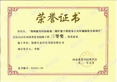 鄭州新鄭國際機場二期擴建工程機場公共區(qū)域綠化完善項目——2020年河南省優(yōu)秀園林工程三等獎