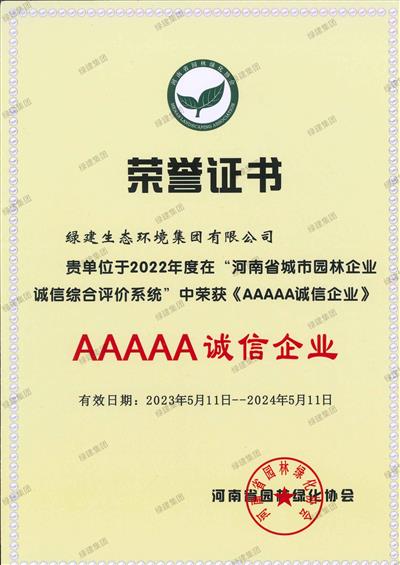 河南省園林綠化協(xié)會5A證書2023.5-2024.5