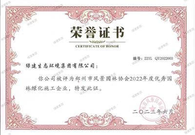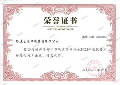 2022年度鄭州市風景園林協(xié)會優(yōu)秀園林綠化施工企業(yè)