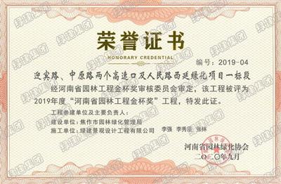 迎賓路、中原路兩個高速口項目榮獲2019年度河南省園林工程金杯獎