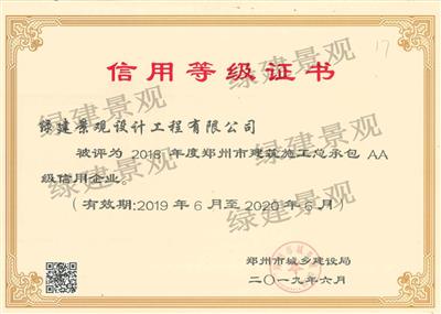 2018年度鄭州市建筑施工總承包AA級信用企業