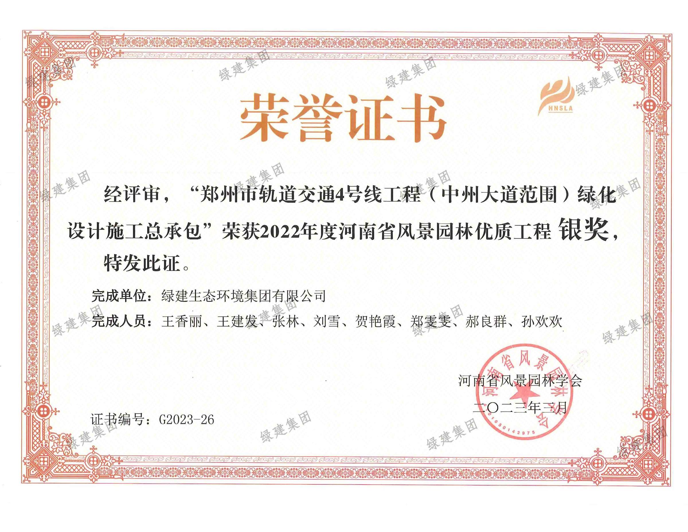 2022年度交通4號線設計施工總承包優(yōu)質(zhì)工程-銀獎