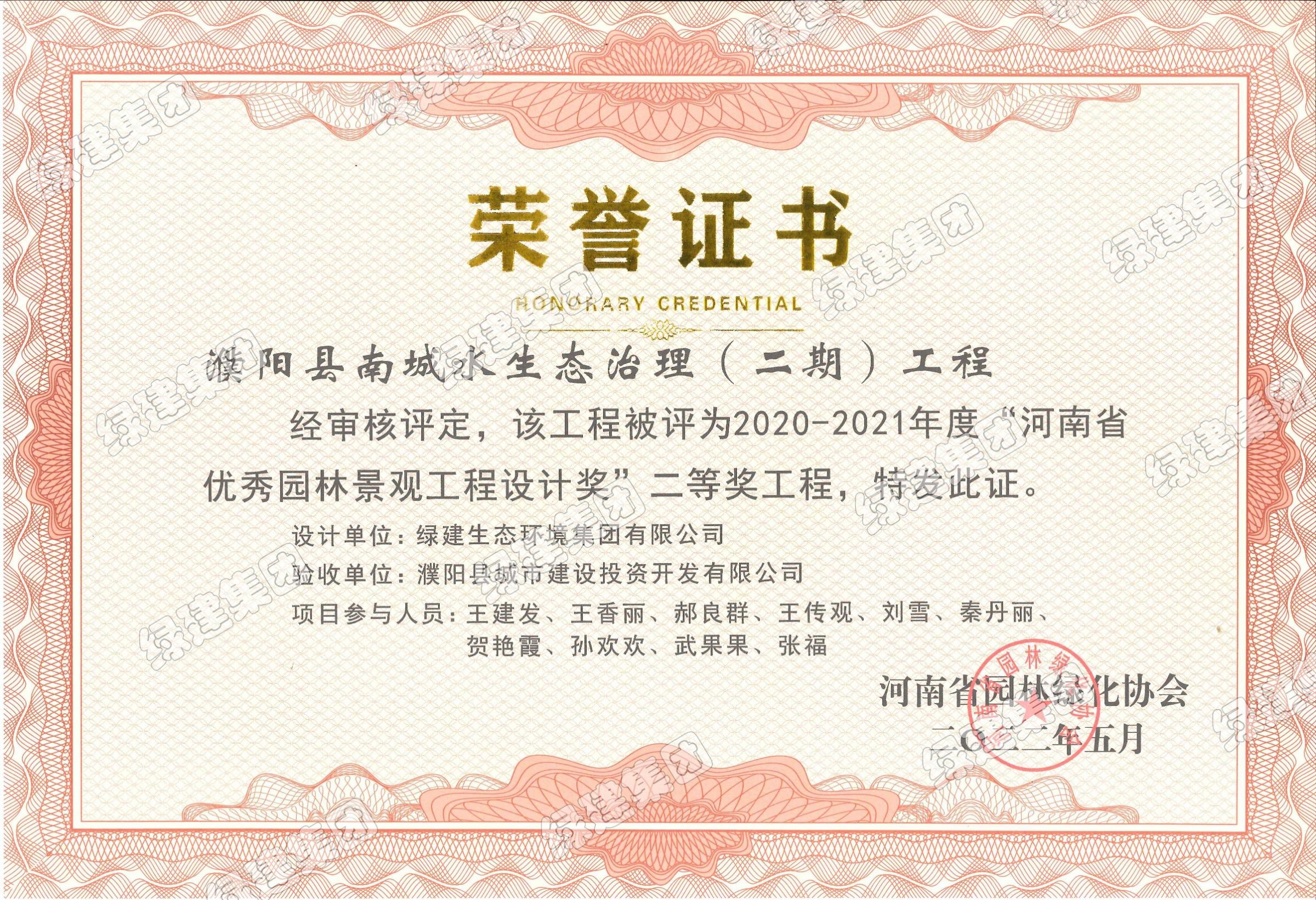 濮陽縣南城水生態(tài)治理(二期)工程 2020-2021年度河南省優(yōu)秀園林景觀工程設計獎二等獎